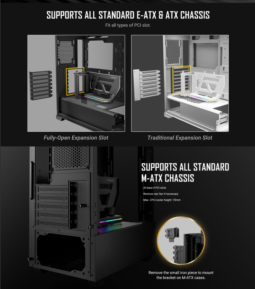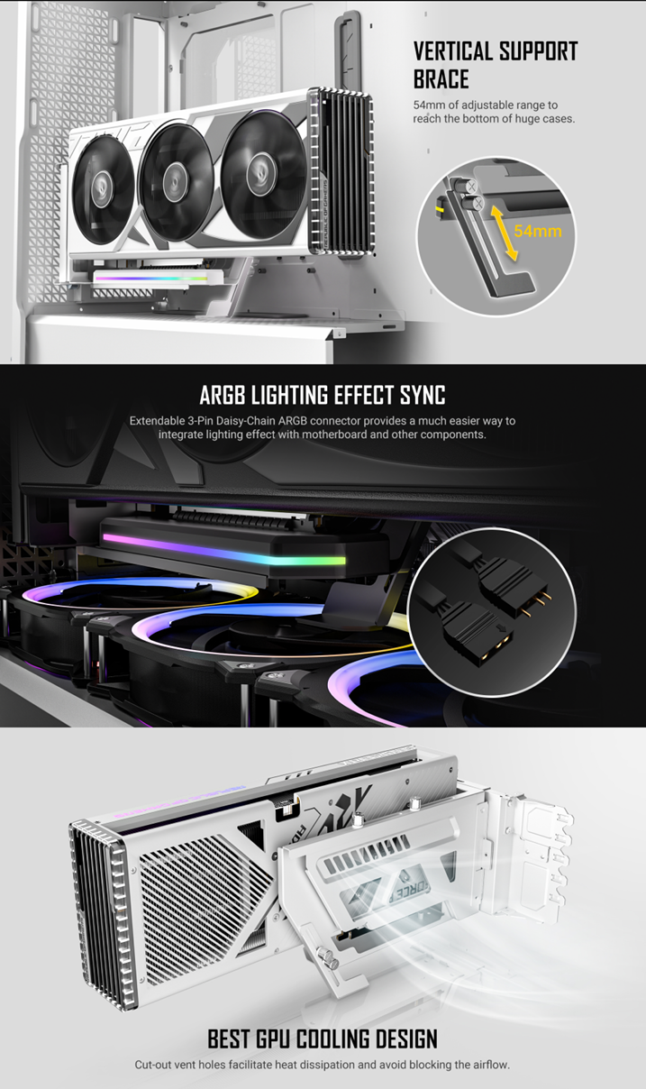 Antec Shift Vertical GPU Bracket with PCIe 4.0 Riser Cable allows you to showcase your graphics card vertically, improving airflow and aesthetics inside your PC case. Supports PCIe 4.0 for maximum bandwidth and performance. Compatible with most modern GPUs and cases. BLACK - 18500 WHITE - 19500