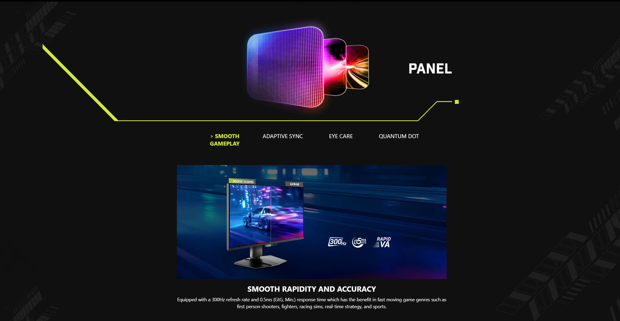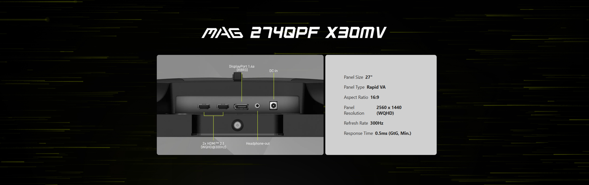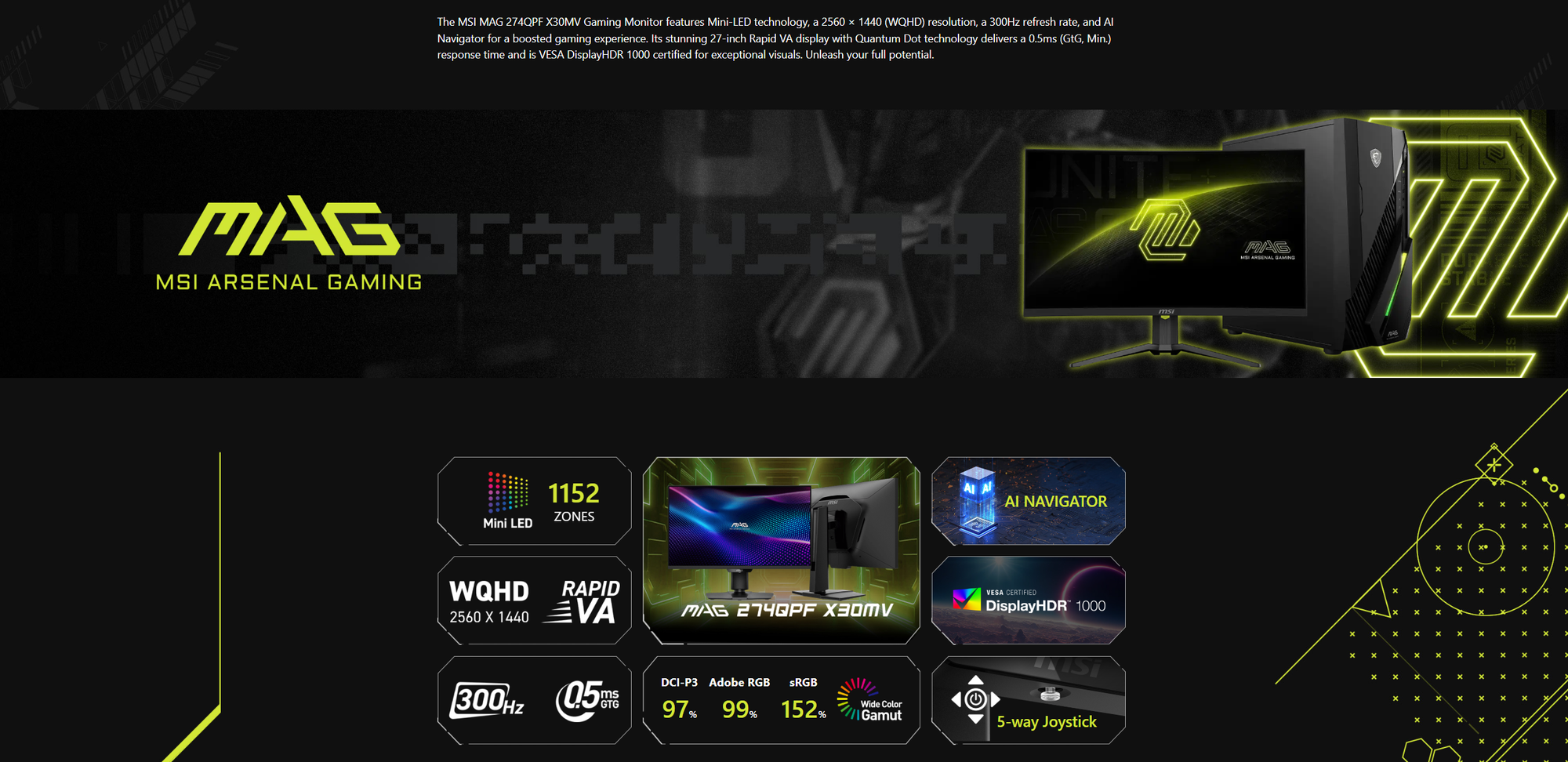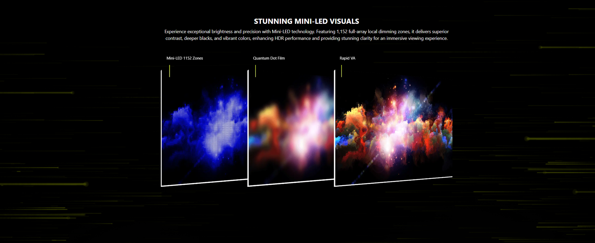 🖥️ 27" Mini-LED 300Hz WQHD Gaming Monitor Experience next-level clarity and speed with the **27" Rapid VA Mini-LED 300Hz Gaming Monitor**. Built for competitive gaming and creative professionals, this display delivers ultra-smooth motion, true HDR brightness, and vibrant color accuracy — all wrapped in a sleek frameless design. 🔹 Key Features * 27" WQHD (2560×1440) Rapid VA Mini-LED Panel * 300Hz Refresh Rate / 0.5ms Response Time for ultra-fast gameplay * VESA DisplayHDR 1000 with peak 1000 nits brightness * 1152 Local Dimming Zones for perfect contrast and true blacks * Adaptive-Sync for tear-free visuals * Console Ready – VRR support for PS5 & Xbox * Ergonomic Stand – Tilt, swivel, pivot, and height adjustable * Frameless, Anti-Glare Display – Stylish, immersive design ⚙️ Specifications * Resolution: 2560×1440 (WQHD) * Brightness: SDR 400 nits / HDR 1000 nits * Contrast Ratio: 4500:1 (Typ.) * Color Coverage: Adobe RGB 99% / DCI-P3 97% / sRGB 152% * Ports: 2× HDMI™ 2.1, 1× DisplayPort 1.4a, 1× Headphone-out * Power: External Adaptor (19V 5.79A) * Mounting: 100×100mm VESA * Dimensions (With Stand): 613×228×424mm * Weight: 7.5kg (Net) * Warranty: 3 Years