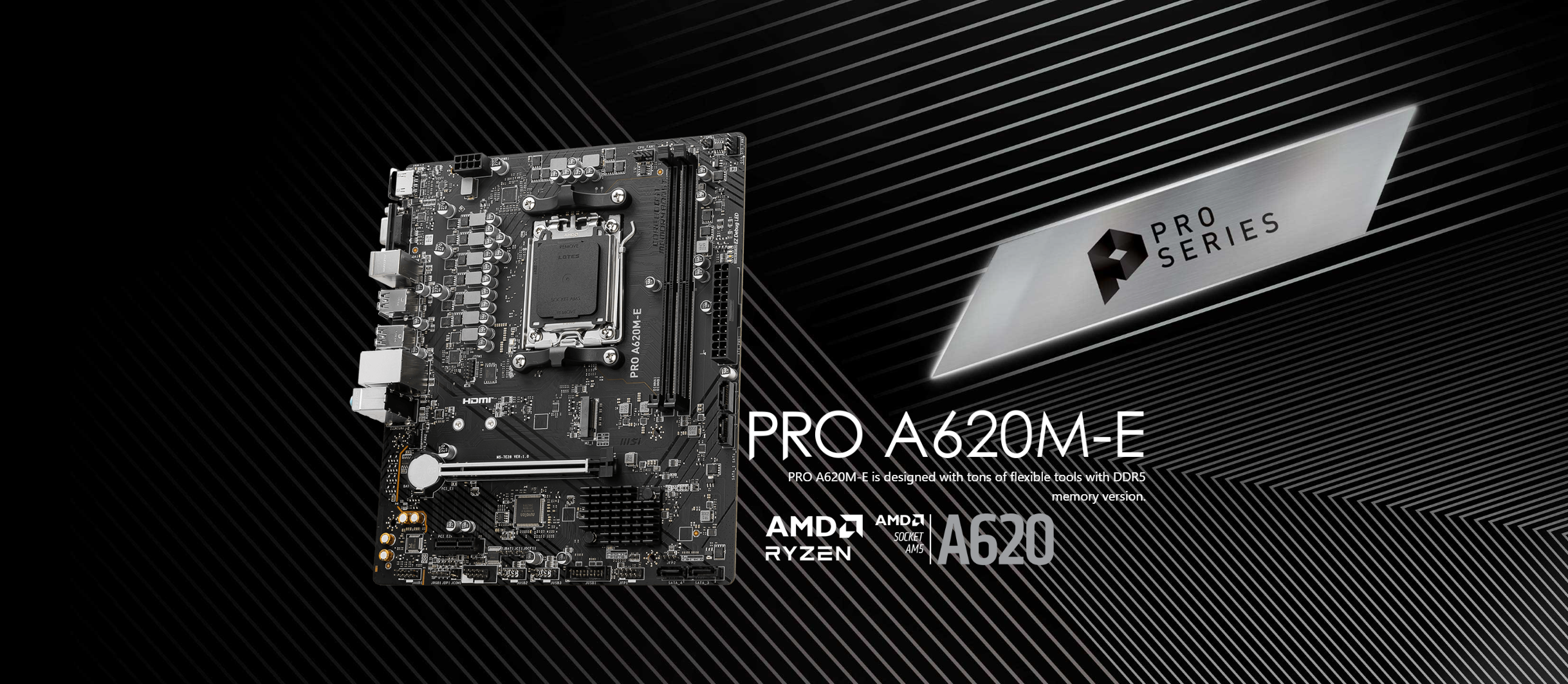 🔧 Core Specifications Chipset: AMD A620 Socket: AM5 CPU Support: AMD Ryzen™ 9000 Series AMD Ryzen™ 8000 Series AMD Ryzen™ 7000 Series Desktop Processors 💾 Memory Memory Slots: 2 × DDR5 Maximum Capacity: Up to 128GB Memory Support: DDR5 6800+(OC) / 6600(OC) / 6400(OC) / 6200(OC) 6000(OC) / 5800(OC) / 5600(OC) / 5400(OC) 5200(OC) / 5000(OC) 4800 MHz (JEDEC) Overclocking Capability: 1DPC 1R: Up to 6800+ MHz 1DPC 2R: Up to 6000+ MHz Dual Channel: Supported Memory Type: Non-ECC, Un-buffered AMD EXPO: Supported 🖥️ Onboard Graphics HDMI Port: 1 × HDMI™ 2.1 Supports up to 4K @ 60Hz VGA Port: 1 Max Resolution: 2048×1536 @ 50Hz 2048×1280 @ 60Hz 1920×1200 @ 60Hz ⚠️ Display output available only with CPUs featuring integrated graphics. 🎮 Expansion Slots PCIe x16 Slot: 1 x16 (Ryzen™ 9000 / 7000 Series) x8 (Ryzen™ 8700 / 8600 / 8400) x4 (Ryzen™ 8500 / 8300) PCIe x1 Slot: 1 PCIe Standards: PCI_E1: PCIe 4.0 x16 (From CPU) PCI_E2: PCIe 3.0 x1 (From Chipset) 💽 Storage M.2 Slot: 1 PCIe 4.0 x4 (From CPU) Supports 2280 / 2260 SSDs SATA Ports: 4 × SATA 6Gb/s 🔁 RAID Support RAID Modes: RAID 0 / RAID 1 / RAID 10 (SATA) 🔊 Audio Audio Codec: Realtek® ALC897 Audio Channels: 7.1-Channel High Definition Audio 🌐 Network LAN: Realtek® RTL8111H Gigabit Ethernet 🔌 USB Connectivity Rear USB Ports: 2 × USB 2.0 4 × USB 5Gbps Type-A Front USB Headers: 4 × USB 2.0 2 × USB 5Gbps Type-A ⚙️ Internal Connectors 1 × 24-Pin ATX Power Connector 1 × CPU Power Connector 1 × CPU Fan Header 2 × System Fan Headers 2 × Front Panel Headers (JFP) 1 × Front Audio Header (JAUD) 1 × Chassis Intrusion (JCI) 1 × COM Port Header (JCOM) 1 × RGB LED Header (JRGB) 1 × TPM Header (TPM 2.0 Supported)