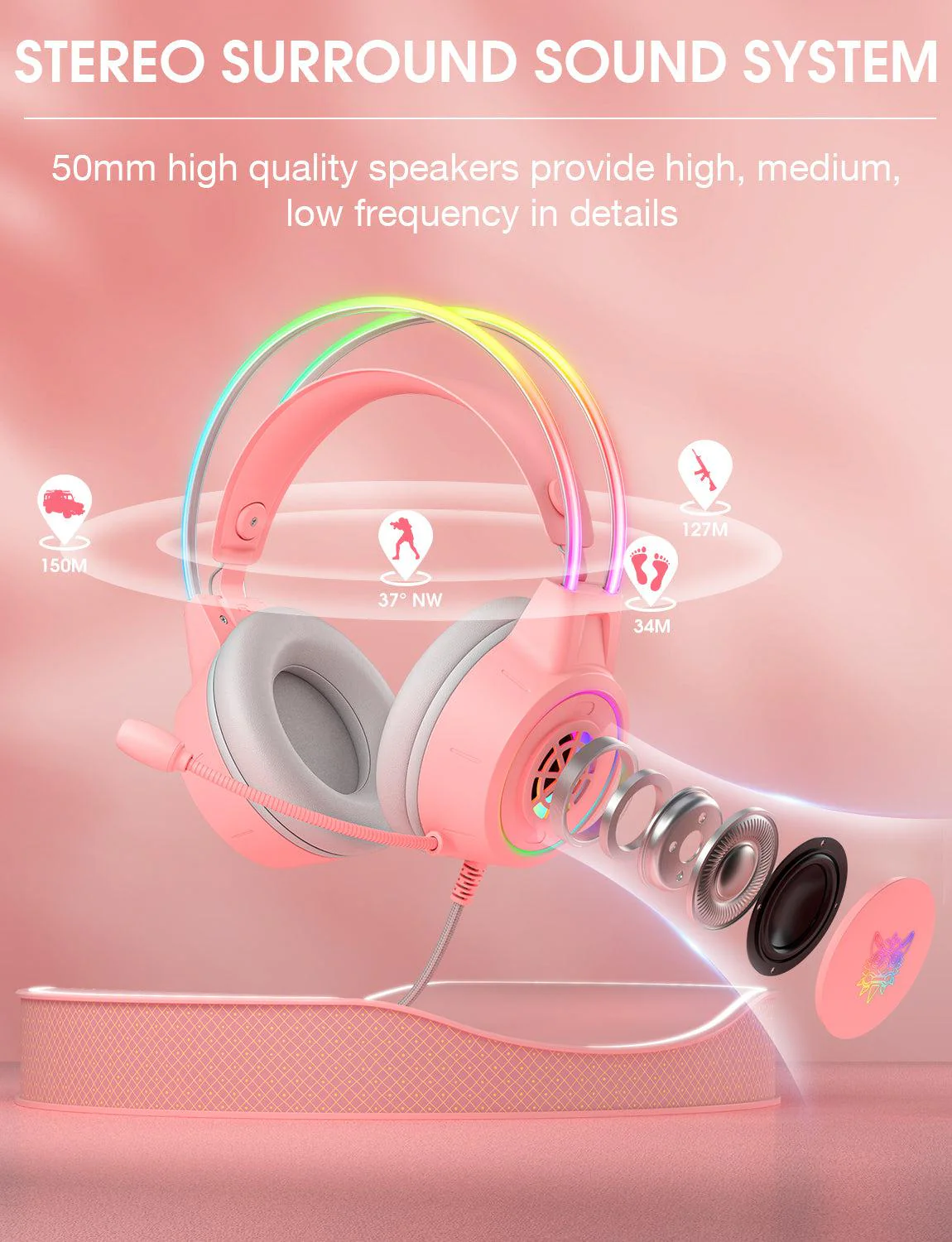 ONIKUMA K10 PRO 7.1 Speaker diameter: 50mm Impedance: 32ohm±15% Sensitivity: 102+-3db Frequency: 20-20,000Hz Mic dimensions: 6.0*5.0mm Mic sensitivity: -38+-3dB Mic impedance: 2.2kohm Directivity: Omnidirectional Working current: Below 100mA Cable length: Approx. 2.2m/7.22ft Headphone size: Approx 22 * 9 * 20cm/8.66* 3.54 * 7.87 inches Headphone weight: 380g/13.4oz Packing size: 23.2 * 10.3 * 21/9.13 * 4.06 * 8cm Packing weight: 519g/1.14lbs RGB LED working voltage: DC 5V+/-5% Warranty : 1 Year