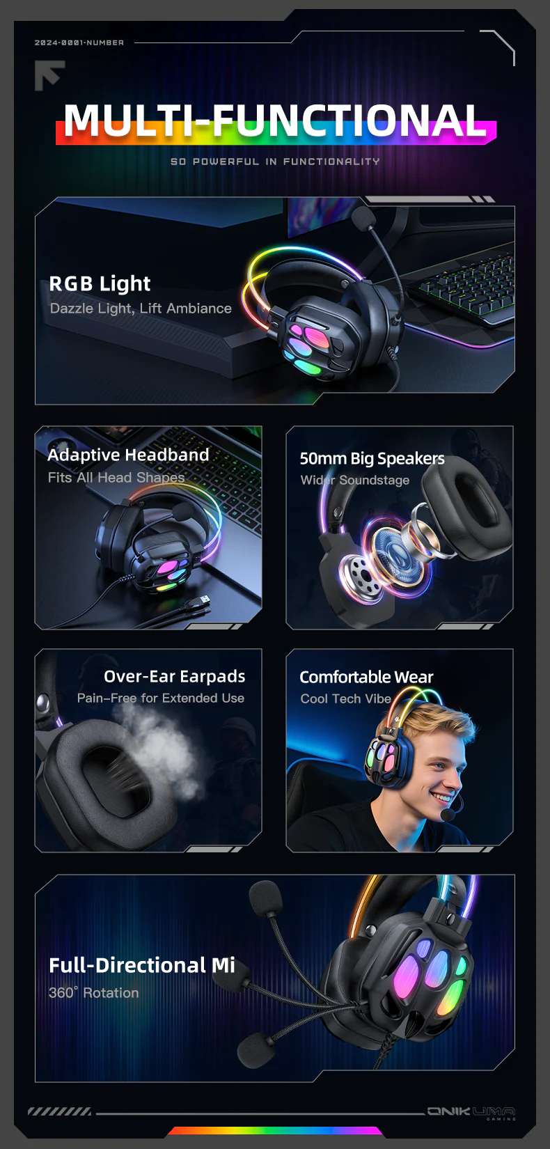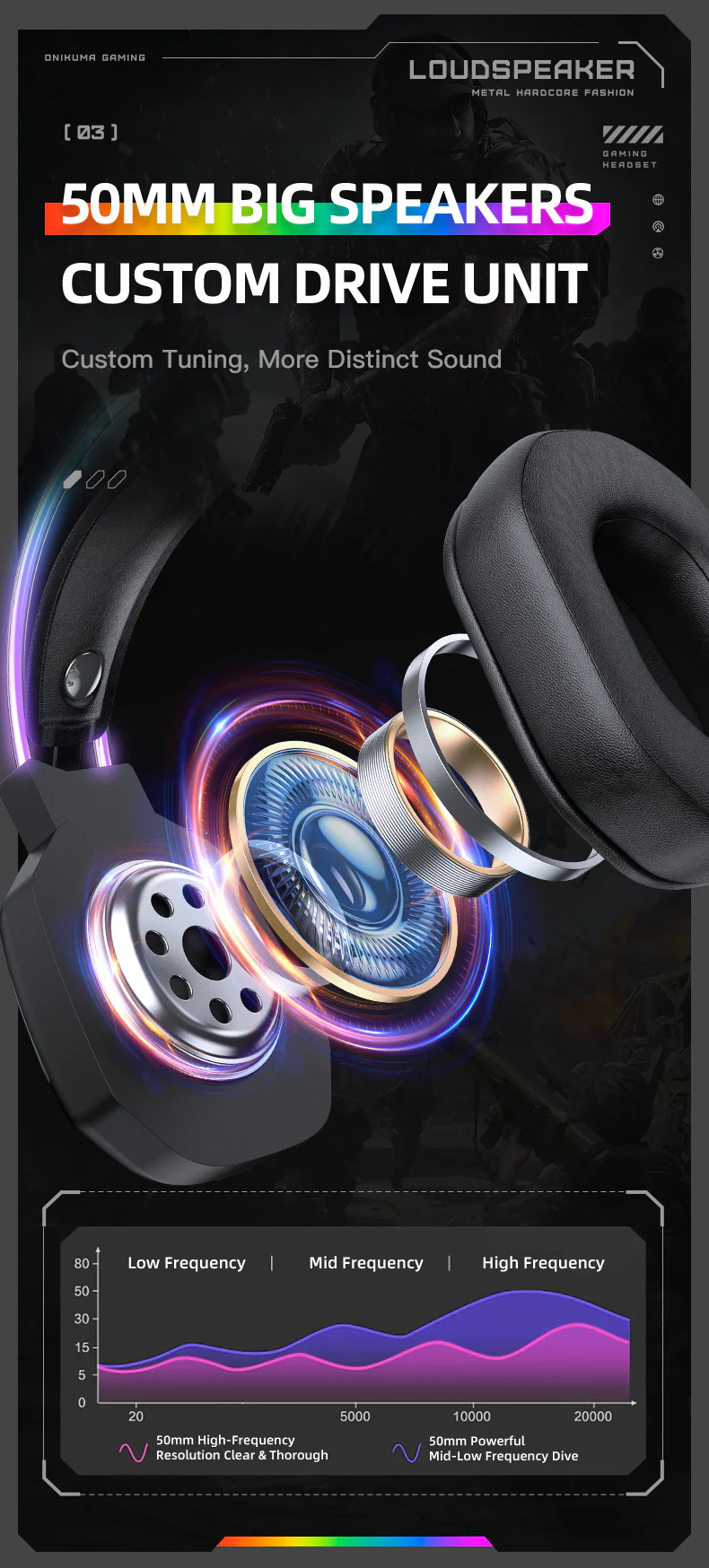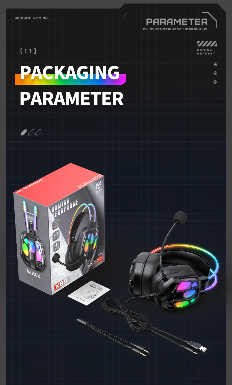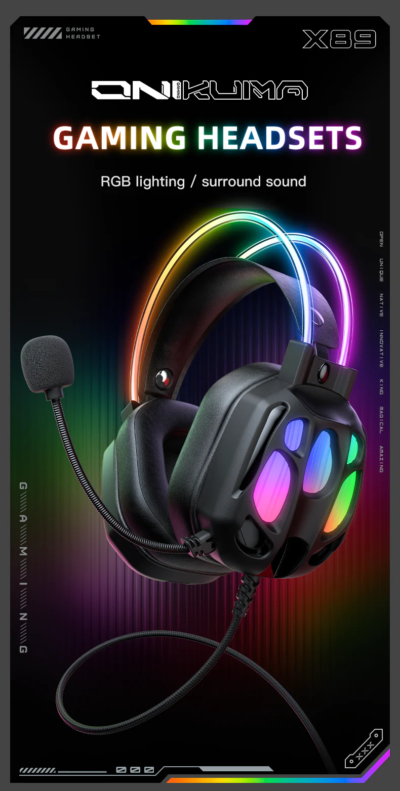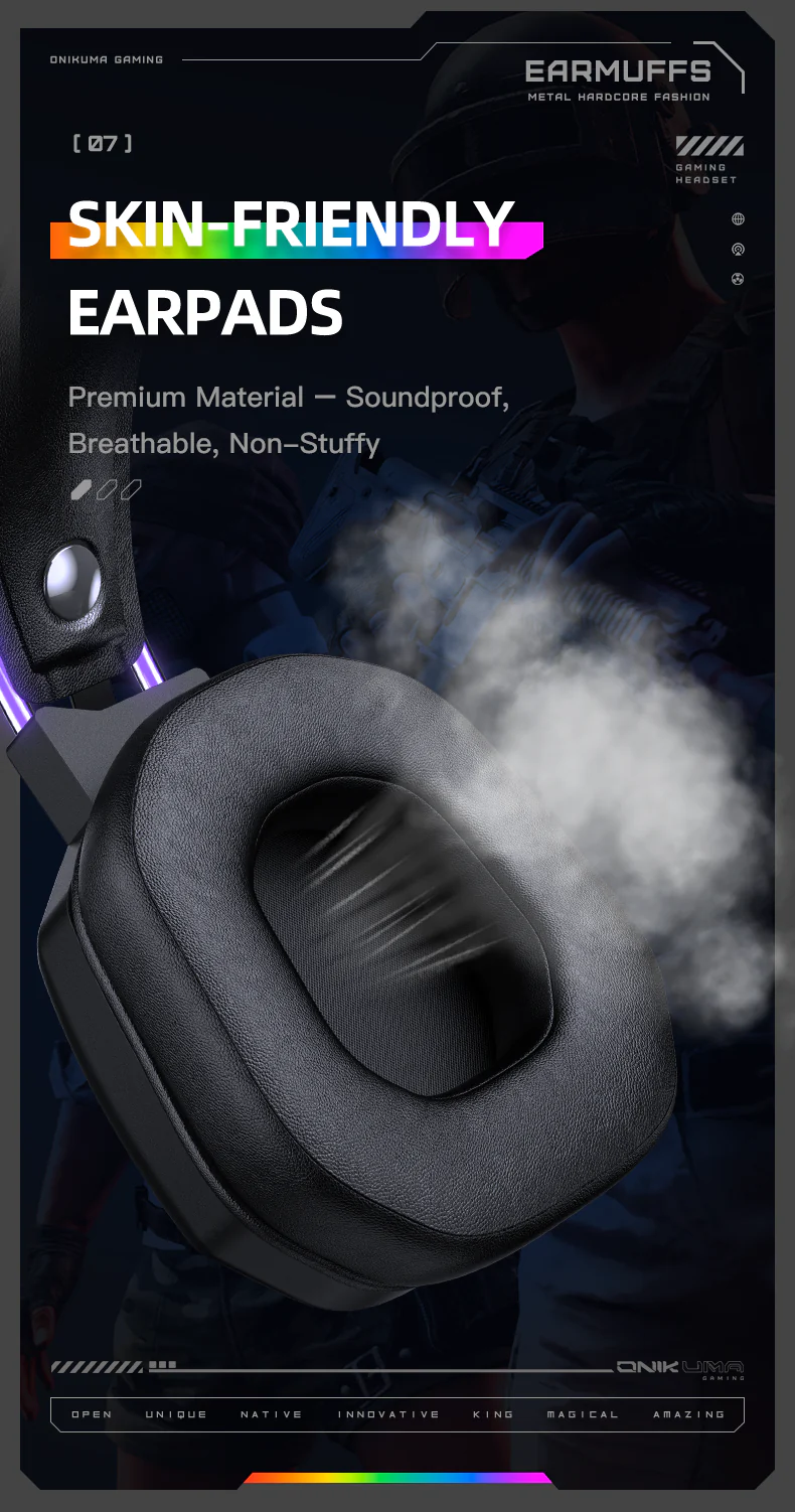 Model: ONIKUMA X8 Sensitivity: 116±3dB Frequency: 20-20000Hz Interface: USB+3.5mm Driver diameter: 50mm Impedance: 20ohm +/- 15% Cable length: 2.2m Color: Black Material: ABS