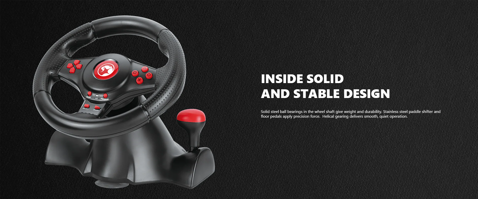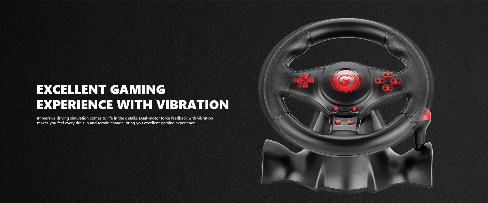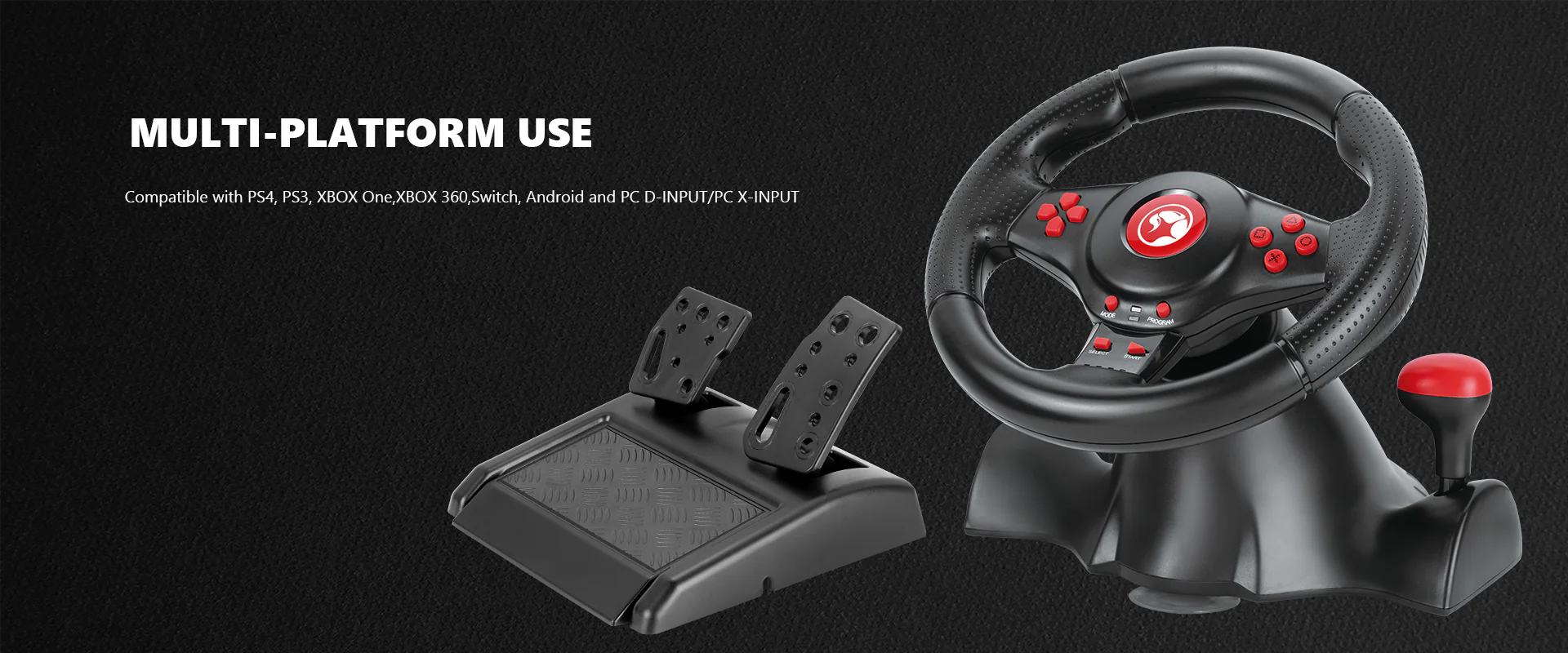 🏎️ GT-903 Onaga 30 Racing Wheel with Foot Pedals ⚫ Specifications: ✔️ Model: GT-903 Onaga 30 ✔️ Material: ABS Plastic + Suction Base ✔️ Buttons: 16 Buttons on Wheel + 2 on Pedal ✔️ Steering Angle: 180° Rotation ✔️ Vibration: Yes (Realistic Force Feedback) ✔️ Voltage & Current: <100mA ✔️ Connection: USB Connector for Wheel & Pedal ✔️ Programmable Controls: Brake + Throttle ✔️ Compatibility: PS4, PS3, Xbox One, Xbox 360, Nintendo Switch, Android & PC ⚫ Features: * Realistic racing simulation experience * Dual pedals for brake and acceleration * Strong suction base for stability during gameplay * Plug & Play connectivity – easy setup * Ergonomic design for comfortable, long gaming sessions ⚫ Perfect for: Racing enthusiasts and gamers who want a true-to-life driving experience 🎮🏁