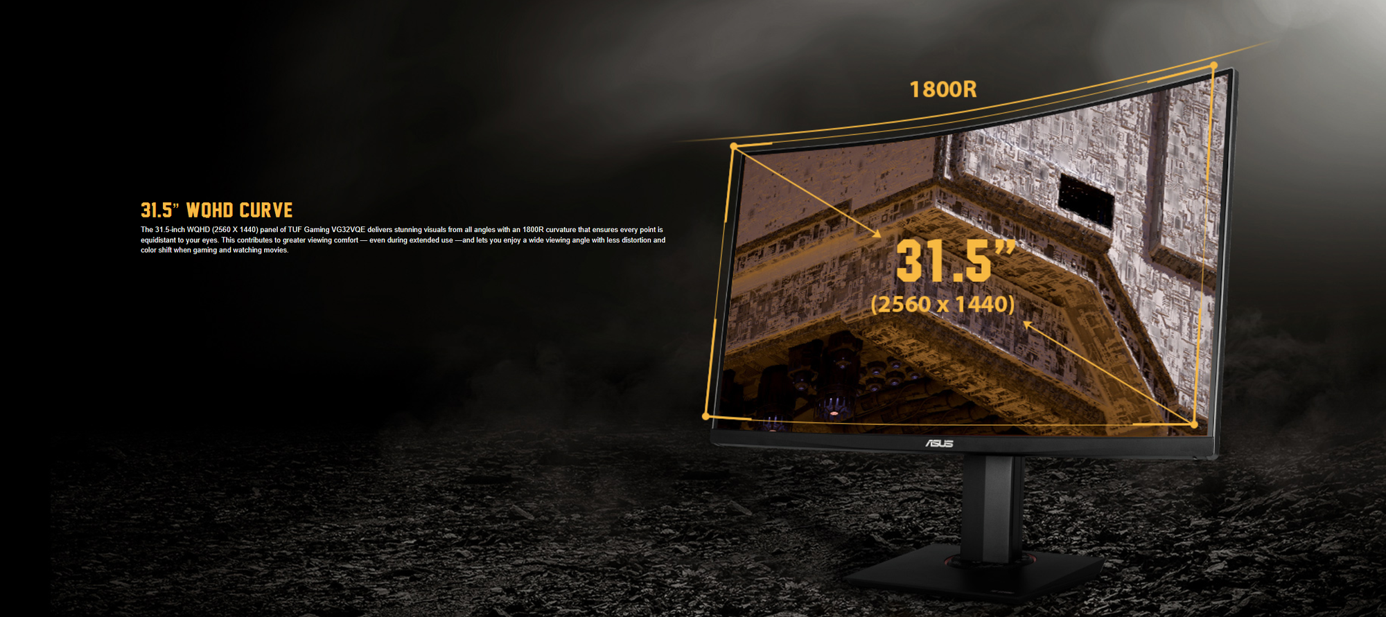 ✔️32 inch (31.5 inch viewable), QHD (2560 x 1440) 1800R curved gaming monitor with ultrafast 144Hz refresh rate designed for professional gamers and immersive gameplay ✔️ASUS Extreme Low Motion Blur Sync (ELMB SYNC™) technology enables a 1ms response time (MPRT) together with Adaptive-sync, eliminating ghosting and tearing for sharp gaming visuals with high frame rates. ✔️FreeSync™ technology to eliminate screen tearing and choppy frame rates ✔️Compatible with industry-standard HDR10 high dynamic range for color and brightness levels that exceed the capabilities of ordinary monitors ✔️Features an ergonomically designed stand to offer extensive swivel, tilt and height adjustments ✔️Supports both Adaptive-Sync with NVIDIA GeForce* graphics cards and FreeSync with AMD Radeon graphics cards *Compatible with NVIDIA GeForce GTX 10 series, GTX 16 series, RTX 20 series and newer graphics cards Full HD(1920 X 1080)@120Hz output on PS5; Full HD &1440P(2560 x 1440)@120Hz VRR output on Xbox Series X/S